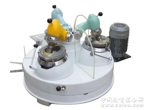 產品詳細介紹三頭研磨機主要結構說明本機結構,總體結構,主要由三套磨頭、離合器、研缽支座等總裝組成。磨頭,研缽支座和離合器互成120?均勻地安裝在轉座上,轉座裝在底座的軸承中,在底座正面裝有接料支板及電器,左方裝有電機。當離合器接通時,電機通過皮帶輪,齒輪軸,萬向節