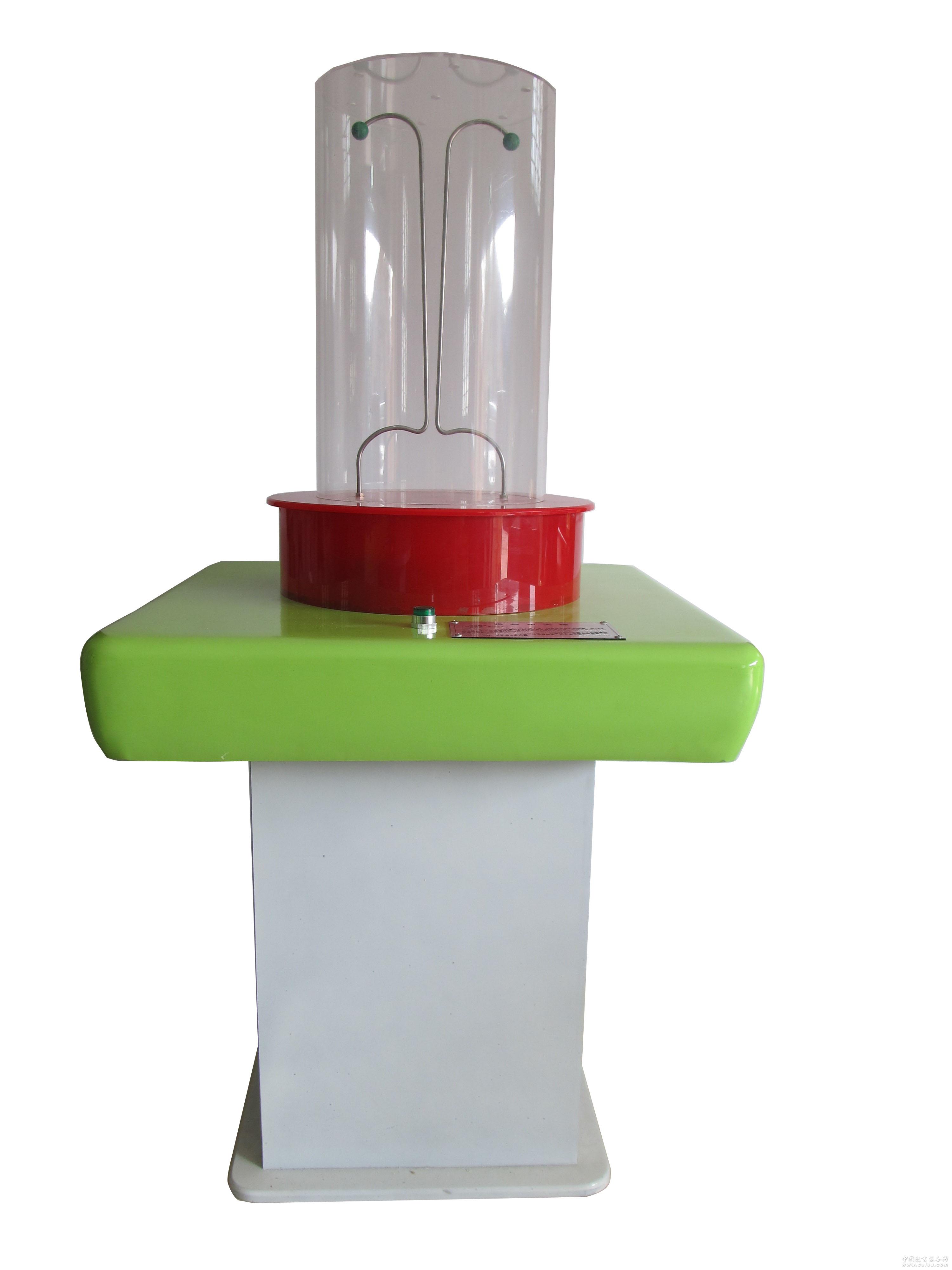 產品詳細介紹展示原理: 在2萬伏高壓下,兩電極最近處(約0.5厘米)的空氣首先被擊穿,產生電弧放電。空氣對流加上電動力的驅使,使電弧向上升。隨著電弧被拉長,電弧通過的電阻加大,維持空氣電離所需的電壓更高、能量更大時,電弧就會自行熄滅。 操作說明: 接通電源,觀察電弧沿羊角形電極向上升的現象。展品盡可能放在光線較暗,且通風良好處,這樣效果更佳。
