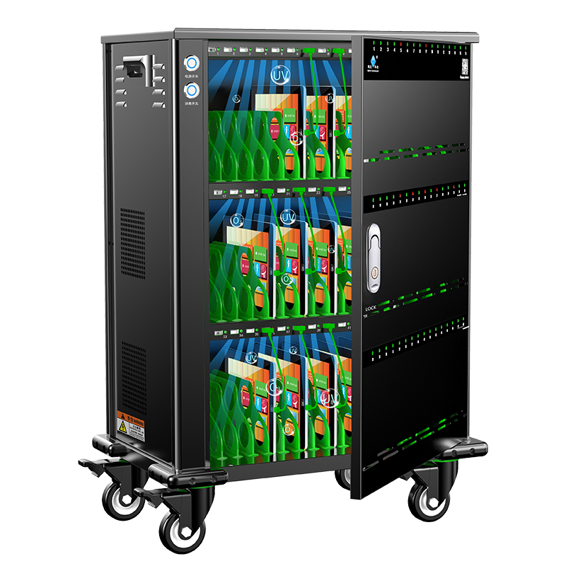 產品詳細介紹品牌:際慶科技 型號: USB48 USB48招投(應標)參數: 功能參數: 1、★USB 5V2.4A直流充電口48/51/60個并配對應數量綠色數據線(智能IC芯片識別所需分流安全穩定高效),單120mm風扇智能溫控28℃±5啟停系統(Ai) 2、★圓形金屬電源開關,每口數位標識并具備智能LED轉燈功能(紅燈:充電狀態中,綠燈:充滿/未連接),配48/51/60條綠色數據線; 3、★主動式PEC節能開關電源,柜內置十重安全保護①雷擊保護②浪涌保護③過載保護④漏電保護⑤隔離保護⑥過流保護⑦過壓保護⑧短路保護⑨過充保護⑩灌流保護; 4、★自動消毒(紫外線兼臭氧O3啟動25min后自動關)并配圓形金屬手動開關(選配項); 5、★定時充電具有電子顯示屏/多組設置/精準定時/倒計時設置(根據使用習慣隨意設定啟停時間段)(選配項) 6、★提供具備軟件支持中英文切換,能夠同時自動識別設備鏈接數并數列排序,一鍵安裝和卸載應用APP、文件分發、文件刪除、一鍵關機等批量化智能管控,集中監測設備實時充電電量、充電狀態、定位尋找、應用程序以及內存儲容量;(選配項) 結構參數: 1、★三層式全黑每層16工位綠色ABS隔位設計,帶鎖前單開門,左側艙為電源管控封閉區;外形尺寸≤596*835*372(mm含腳輪防撞),工位容積320*200*25(mm) 2、★雙側ABS工程提手,頂邊圓弧(≥R10)設計,四角加裝凸高22mm軟塑防撞角,4個2.5寸剎車腳輪(高度105mm); 3、★門板有對應內USB口數位標識的數位標識,前門板與側板對流孔通風排熱設計; 產品資質: ①★整機CCC認證(原廠蓋章證明) ②★具有商標(國際分類20和9)證書(原廠蓋章證明) ③★具有軟件著作權(原廠蓋章證明) ④★具有ISO9001:2015質量管理體系認證(原廠蓋章證明) ⑤★具有產品專利證書(原廠蓋章證明) ⑥★具有AAA企業信用等級證書(原廠蓋章證明)