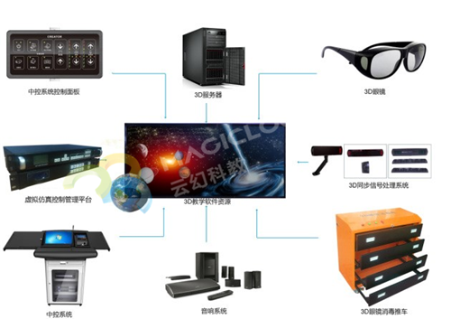 云幻科教3DLED大屏智能教室解決方案,采用高密度小間距3DLED屏幕,搭配中央控制系統、3D服務器、3D信號處理器、3D互動講臺、3D紅外眼鏡、消毒推車、音響等構成。3D立體感激發、吸引觀眾達到前所未有的深度,成為教學的理想工具。