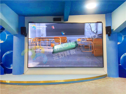 廣東省東莞市厚街鎮竹溪小學是一所辦學高起點、高要求、教育特色彰顯、充滿創新活力的現代化學校。云幻科教根據學校的定位高、場地現場較大和資金預算充足等情況,提供了以3DLED大屏為主,輔以2塊2D投影幕布的展現形式,搭配小學3D教育資源庫、專題3D教育資源和豐富娛樂互動資源的3DLED大屏智能教室綜合解決方案。