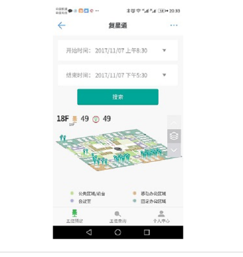n 員工可在系統中方便地找到某個人的占用位置,并按照系統提供的地圖和導航前往。