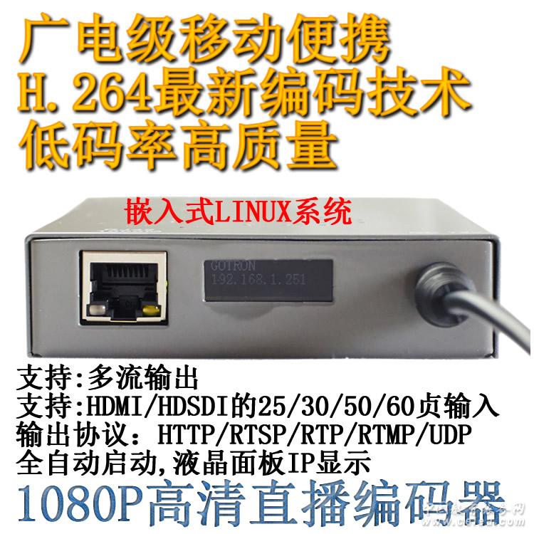 技術特點: 高清視頻接口HDMI,HDSDI 兼容傳統視頻接口cvbs及VGA電腦接口 H.264 HD高清1080p 60fps編碼 H.264/MPEG-4 AVC 從baseline profile, main profile 到high profile level 4.1 支持固定位率CBR,及可變位率VBR編碼 支持 CAVLC 以及 CABAC 編碼模式 碼率從128kbps到15Mbps 可設置 音頻AAC編碼 視頻編碼分辨率從Cif到HD 1080p 可調,支持VGA分辨率 支持圖像de-interlaced轉逐行及內置圖像2D/3D降噪功能 支持電腦VGA格式的分辨率,從640x480到1600x1200,方便采集編碼電腦畫面 網絡協議支持HTTP,RTSP,UDP 輸出編碼包格式:TS,MP4或ES 內嵌Web server操作管理界面 支持客戶端瀏覽器直接接收視頻 支持多達4個視頻流同時輸出,實現高清標清同時出流 內置字幕疊加OSD功能 1000兆網卡以及Wifi無線網 USB 2.0 OTG 液晶屏顯示設備IP信息