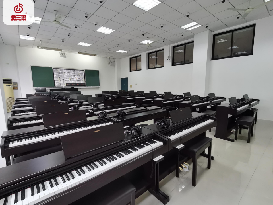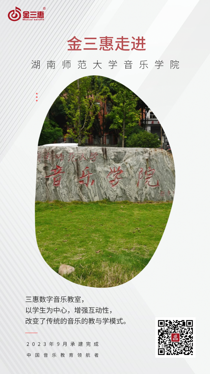 2023年9月,金三惠數字音樂教室走進湖南師范大學音樂學院,為學生提供了18+1、32+1的電鋼琴教室配備了金三惠電鋼琴教學系統、電鋼琴、數字音樂教學儀等教學教具等。
