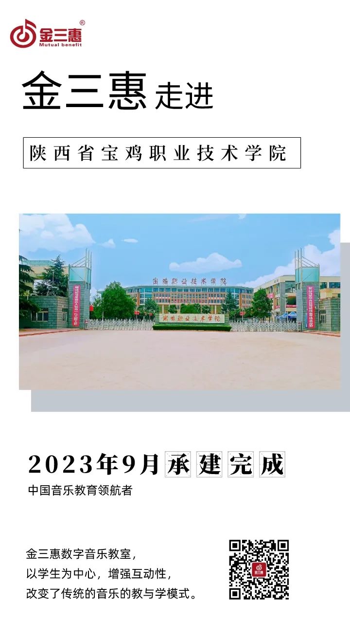 2023年9月,金三惠數字音樂教室走進陜西省寶雞職業技術學院,為學生提供了55+1的電鋼琴教室兩間,70+1的電鋼琴教室一間,配備了金三惠電鋼琴教學系統、電鋼琴、數字音樂教學儀等教學教具等。電鋼琴室-金三惠 (jinsanhui.com)