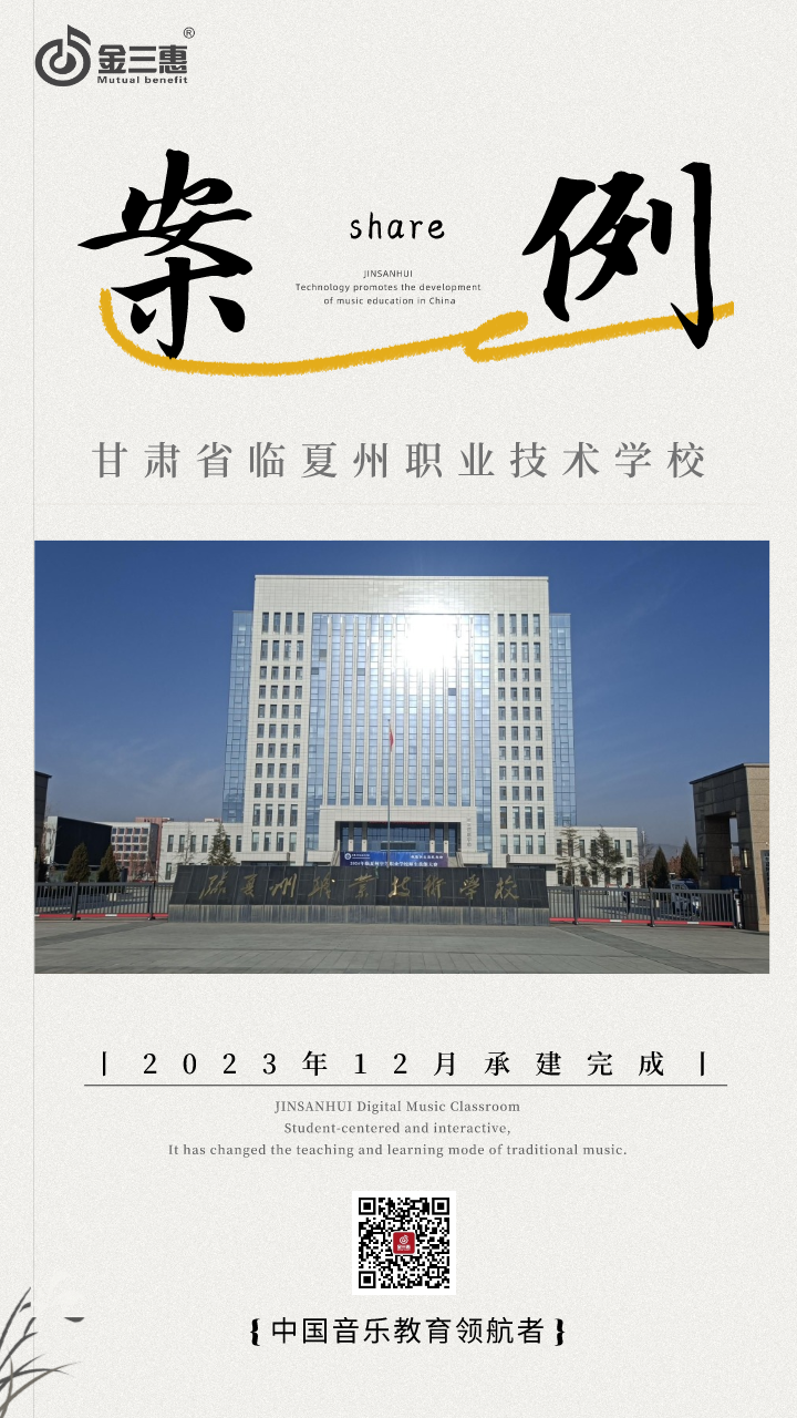 2023年12月,金三惠數字音樂教室走進甘肅省臨夏州職業技術學校,為學校提供了40+1和44+1的電鋼琴教室配備了金三惠電鋼琴教學系統、電鋼琴、數字音樂教學儀等教學教具等。電鋼琴室-金三惠 (jinsanhui.com)