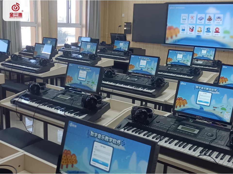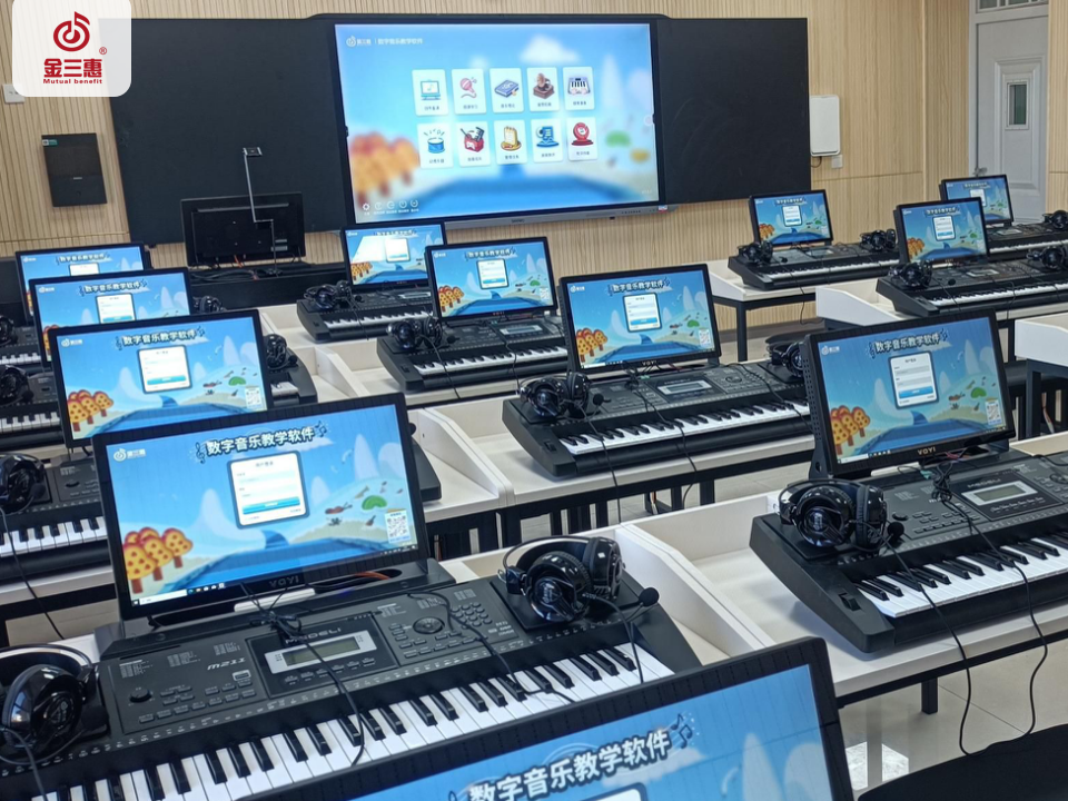 金三惠提供一站式「新常態音樂教室解決方案」「數字音樂教育綜合解決方案」,熱銷產品有:數字音樂教學軟件、美育測評訓練平臺、電鋼琴/電子琴教學管理軟件、電鋼琴教室、智慧音樂素養教室、數字電教板、各大類音樂器材、音樂教學設備等。為區域音樂教育提供管、教、學、評、練綜合平臺,打造智慧平臺+智能硬件+數字資源+智能管控+教學評價為一體的全場景學習生態,實現區域數字化音樂教育轉型。