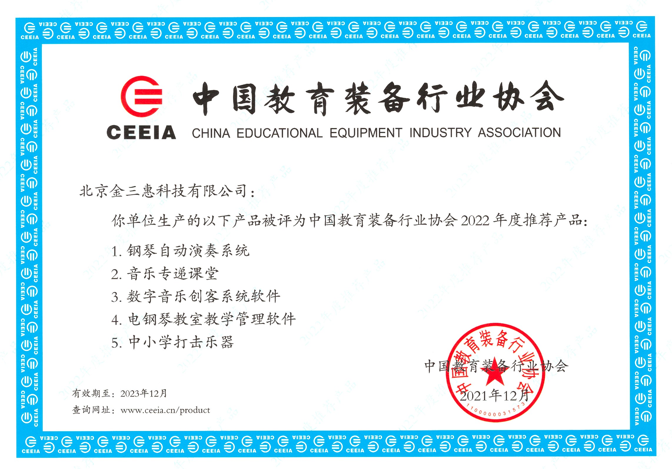 中國教育裝備行業協會 推薦產品 2022-2023年