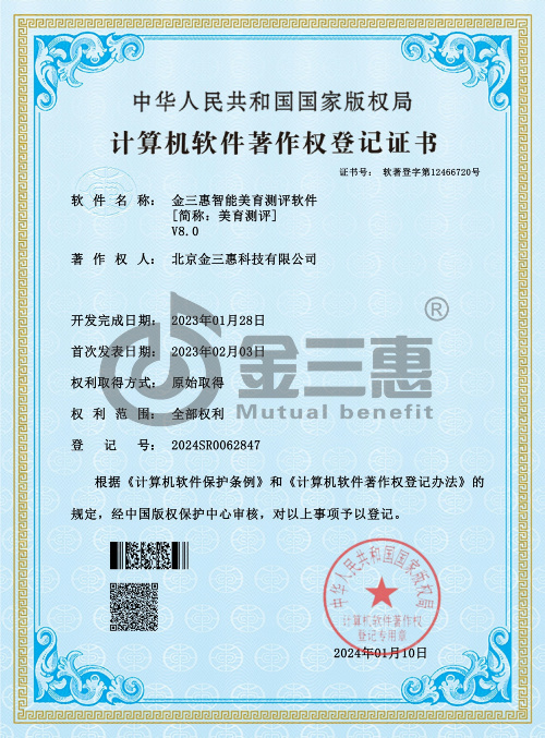 金三惠智能美育測評軟件V8.0 軟著登記書