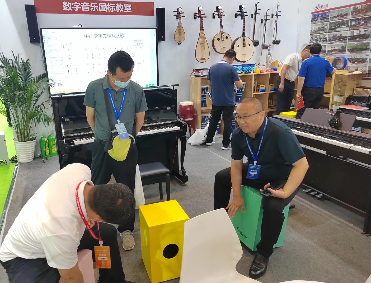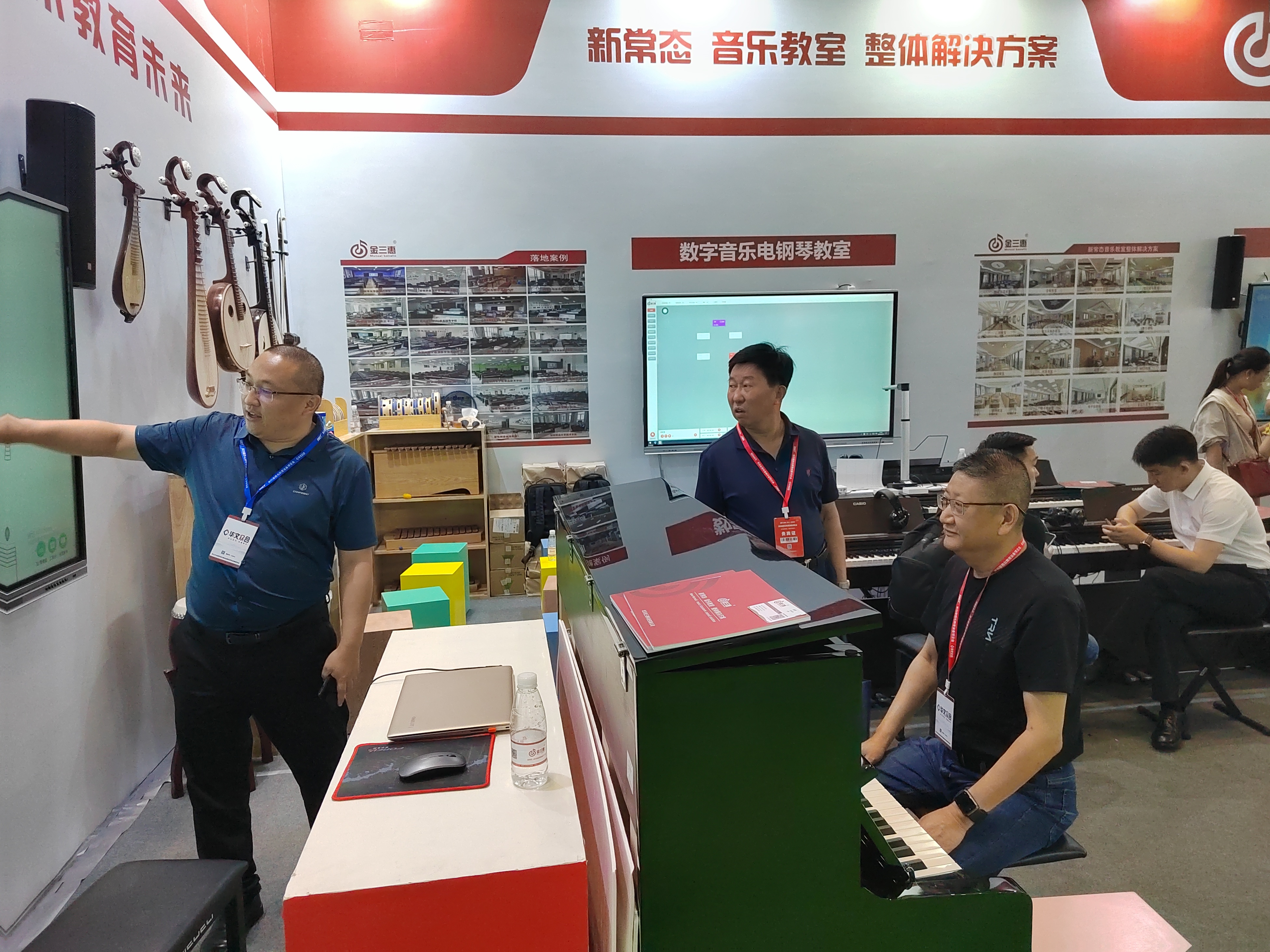 金三惠展位(2A111)現場人潮如涌,來自全國各地的領導、客戶、教師,圍滿了金三惠的展臺,共同咨詢、觀摩、試用與交流。一番火爆場景體現出大家對于金三惠產品的喜愛與認同,更感謝各位領導的蒞臨指導,金三惠持續努力開發新產品,為音樂教育發展助力。