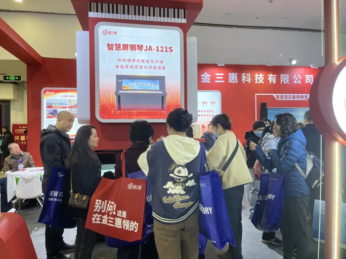 展會現場,金三惠的工作人員耐心地為每一位參觀者講解產品的特點與優勢,參觀者紛紛拿出手機拍照記錄,現場體驗了自動演奏鋼琴、數字音樂教學平臺等產品,感受到了科技與音樂教育結合的無限可能。