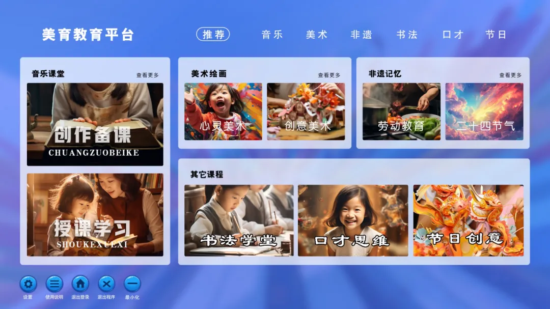 美育教育平臺專注于美育教育,積極響應國家政策,立足當下素質教育需求,充分利用現代信息化手段,打造數字化、可視化為一體的智能數字美育教育平臺。