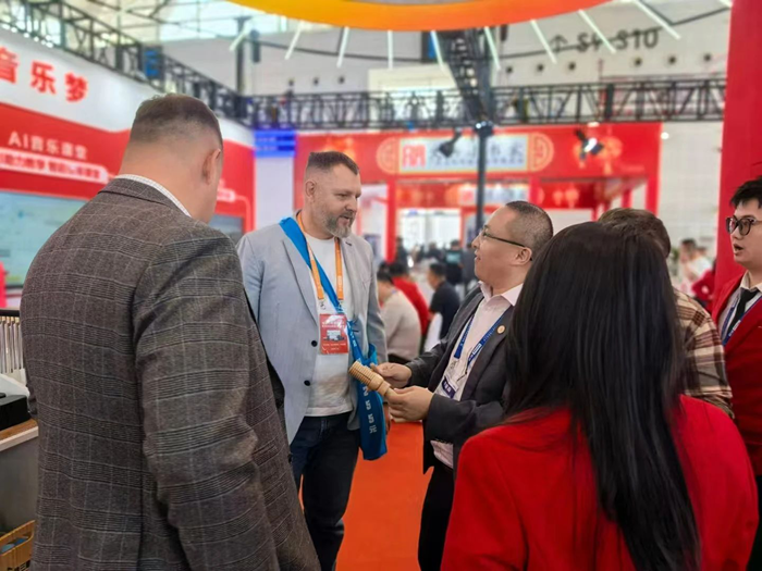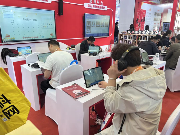 AI音樂課堂更是深度融合AI智能音創(chuàng)、AI伴奏生成、AI智能測評、AI智能轉(zhuǎn)譜、AI智能教唱等技術(shù),打造了“AI+音樂教育”的創(chuàng)新音樂教學(xué)、學(xué)習(xí)體驗,參觀者紛紛體驗其中,沉浸在科技與藝術(shù)融合的魅力里。