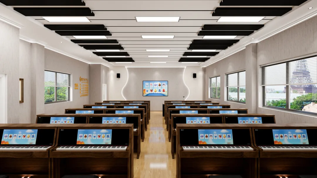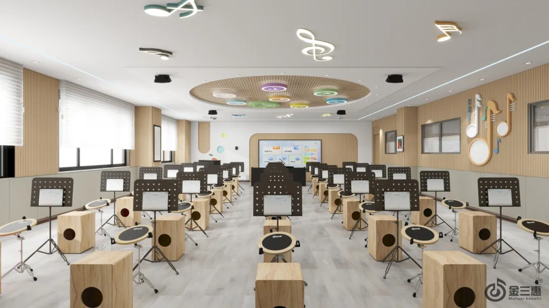 教室滿足中小學音樂與唱游課程教學要求,配備多種樂器、教具、課程資源等,能夠滿足學生聆聽、欣賞、演奏、創作、排練的需求,培養學生的創造力、自信心、專注性、合作精神、反應能力及全面人格發展,享受音樂帶來的快樂。