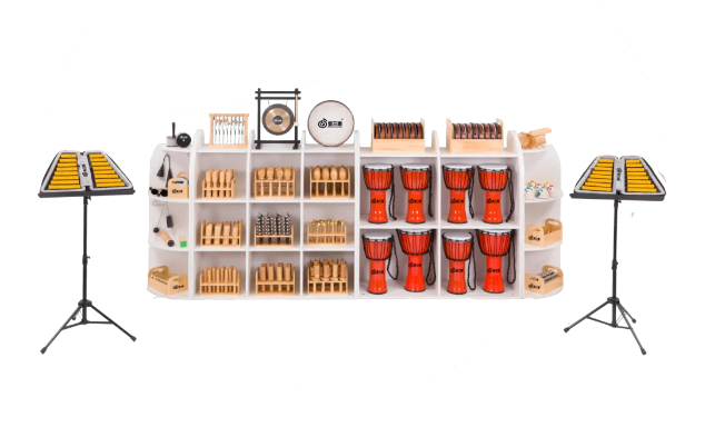 針對打擊樂器的管理與收納問題,我們對小打擊樂器單獨進行了收納盒的設計,使學生拿放更方便,樂器管理更輕松,教室環境更整潔。
