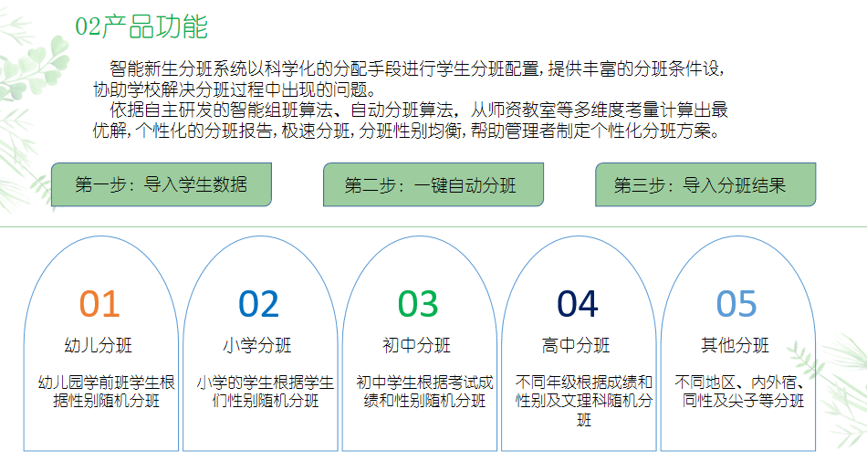 產品詳細介紹智能新生分班系統以科學化的分配手段進行學生分班配置,提供豐富的分班條件設,協助學校解決分班過程中出現的問題。