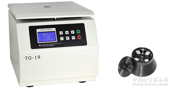 產品詳細介紹TG-19 臺式高速離心機介紹:TG-19 臺式高速離心機 儀器特點: 變頻電機驅動、微機控制 液晶顯示 電子安全門鎖,不平衡保護 故障自動診斷 轉頭自動識別 ,確保安全 特有的彈性轉頭固定方式,更換轉頭方便快捷 12個常用程序儲存,19級升降速速率可調 RCF可直接設定及顯示,無需RPM/RCF換算 儀器在運行中可以修改運行參數 基本參數: 最高轉速 Max Speed19000 r/min最大離心力 Max RCF25050 xg最大容量 Max Capacity6×100ml(8000rpm)轉速精度 Speed Accuracy±20 r/min定時范圍 Timer Range1min~9999min59s/點動/連續噪 聲 Noise≤60dB(A)電 源 PowerAC 220V 50HZ 10A外形尺寸 Dimension450×340×330 (L × W × H) mm重 量 Weight25 kg