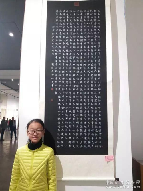 在入圍的近5000幅作品中,經(jīng)過初評、終評、現(xiàn)場復(fù)試三個環(huán)節(jié)的評選,最終,來自青島市西海岸新區(qū)第三實驗小學(xué)五年級三班的劉昭君同學(xué)脫穎而出,喜獲小學(xué)組書法比賽一等獎第一名的好成績;張永銘、劉碩、王小涵三位同學(xué)進百強,獲小學(xué)組優(yōu)秀獎;馬先勇老師榮獲教師組二等獎。其中,劉昭君同學(xué)作為學(xué)生代表在現(xiàn)場頒獎會上作了經(jīng)驗分享,贏得臺下一片贊譽!
