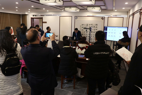 2018年11月26日下午 ,北京師范大學湖南省教學名師班在全國著名書法教育家、湖南省中小學教師發展中心副主任、華文眾合書畫教育研究院副院長李再湘帶領下來到華文眾合,考察華文眾合第五代智慧書法教室。華文眾合副總經理陳方義就第五代智慧書法教室的功能、課程,向數十位來訪者進行精辟地介紹。