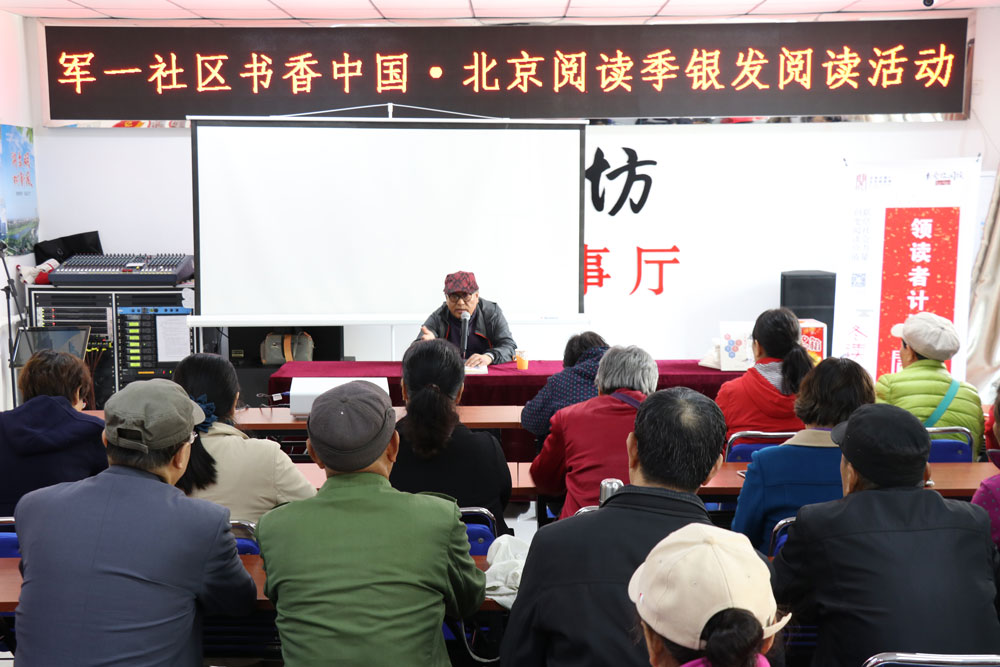 2019年4月11日上午,北京市軍一社區銀發閱讀公益活動迎來了中國書法家協會理事、華文眾合書畫研究院院長、《書法-五步教學法》的作者高軍法,主講書法教學法、簽名贈書,現場的數十位老人近距離接觸著名書法家,交流書法習作心得,氣氛熱烈,獲益良多。