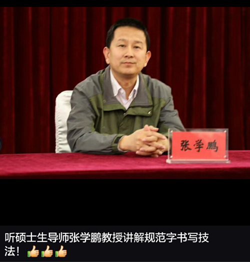 會上,作為主講人,華文眾合書畫研究院專家張學鵬教授為大家講解了規范字書寫技法,得到了參會者的廣泛好評: