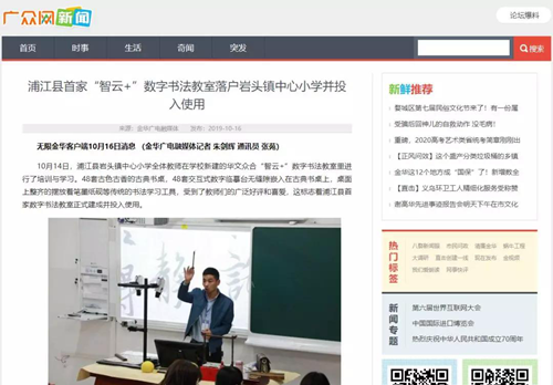 近日,浙江省浦江縣首家數(shù)字書法教室落戶巖頭鎮(zhèn)中心小學(xué),獲金華廣電融媒體報道。
