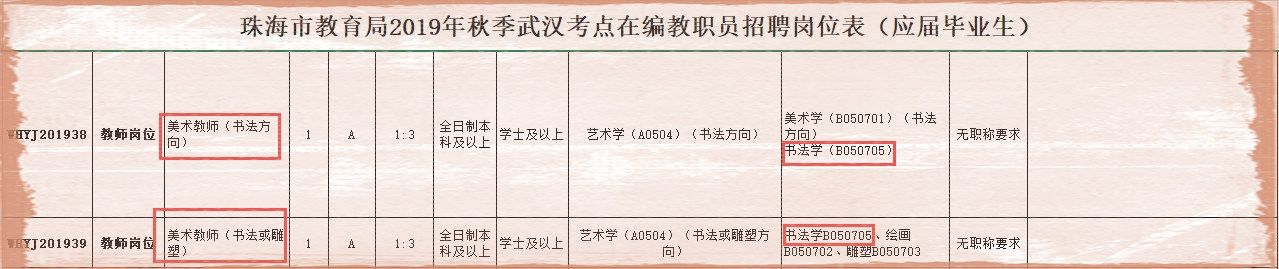 2019年11月,珠海市教育局發(fā)布了2019年秋季武漢考點(diǎn)面向全國招聘市直屬學(xué)校在編教職員公告中的應(yīng)屆畢業(yè)生招聘崗位表: