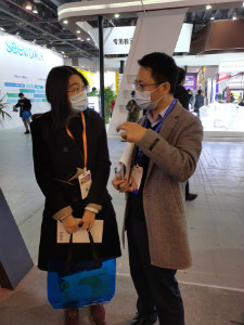 ▲華文眾合工作人員向浙江省教育廳副廳長陳峰講解設備