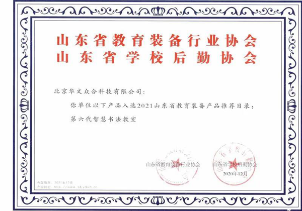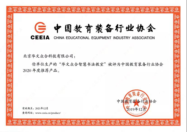 “華文眾合智慧書法教室”被評為中國教育裝備行業協會2020年度推薦產品