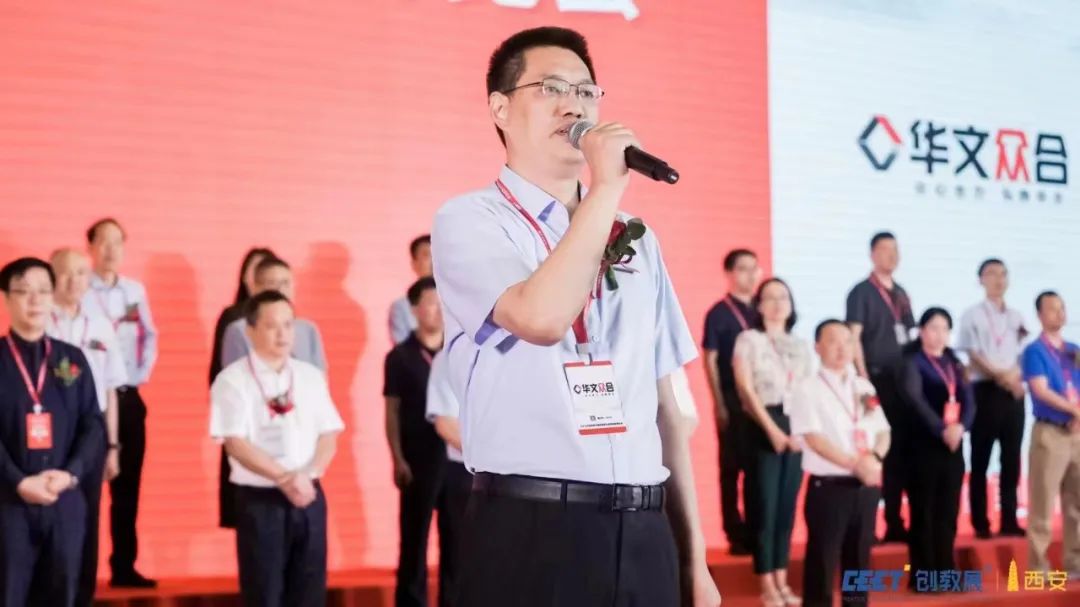 由華文眾合獨家冠名的第四屆西北教育裝備博覽會,于6月9日在西安國際會展中心盛大開幕。中國教育裝備行業協會常務副會長夏國明,陜西省委教育工委委員、陜西省教育廳副廳長趙昶葆,教育部教育技術與資源發展中心(中央電化教育館)標準處處長劉強,中國教育裝備行業協會教育裝備研究院常務副院長施建國,中國教育裝備行業協會會展部主任張繼芳,以及甘肅省教育裝備辦公室、寧夏教育裝備和校園風險管理中心、新疆維吾爾自治區教育條件裝備中心、青海省教育技術裝備中心等領導及負責同志出席開幕式。陜西省教育廳教育技術裝備管理中心主任趙夢主持開幕式。作為獨家冠名單位,華文眾合董事長向大鳳受邀出席開幕式并發言。