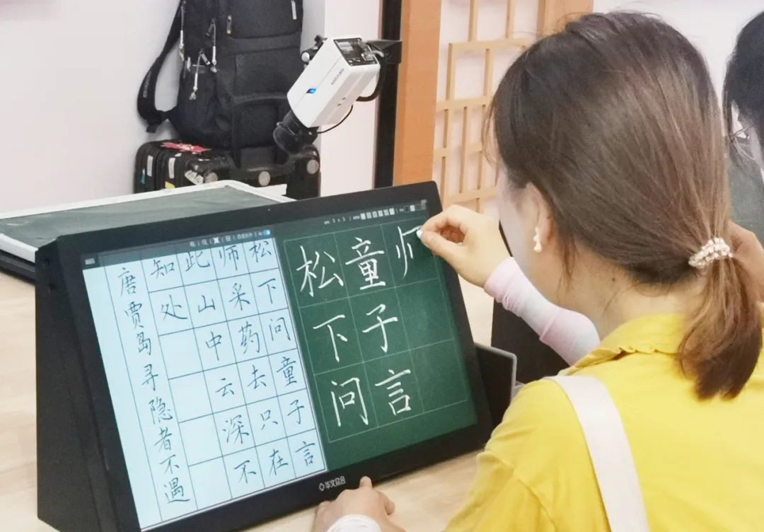 華文眾合發布的智慧粉筆教室為國內首創,填補了國內基于交互式粉筆臨摹臺的智慧粉筆教室的空白。結合歷代智慧書法教室的亮點,以國內師范院校的三筆字教學為導向,還原了“老師在講臺授課、學生在座位上學習”的常規課堂場景;通過交互式粉筆臨摹臺的專利技術,讓學生用普通粉筆即可直接在臨摹屏上書寫,還原了粉筆書寫的體驗。現已實際應用于吉林師范大學、上海師范大學、山東師范大學、湖北師范大學等多所師范類高校,也可用于中小學、高職教教師粉筆字培訓等。