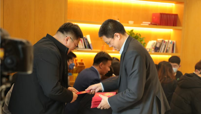 年終總結(jié)大會完美落幕,華文眾合董事長向大鳳為大家派發(fā)新年紅包,給大家送上美好祝福,場面熱鬧溫馨、其樂融融。