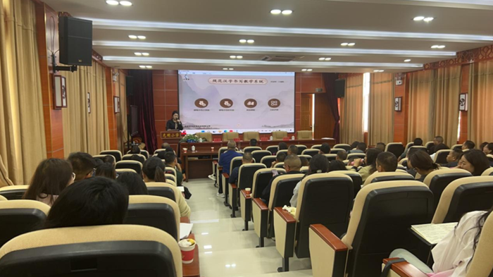 隨后,華文眾合培訓講師為全體教師作了規范漢字書寫教學系統的使用培訓,并進行了現場交流。