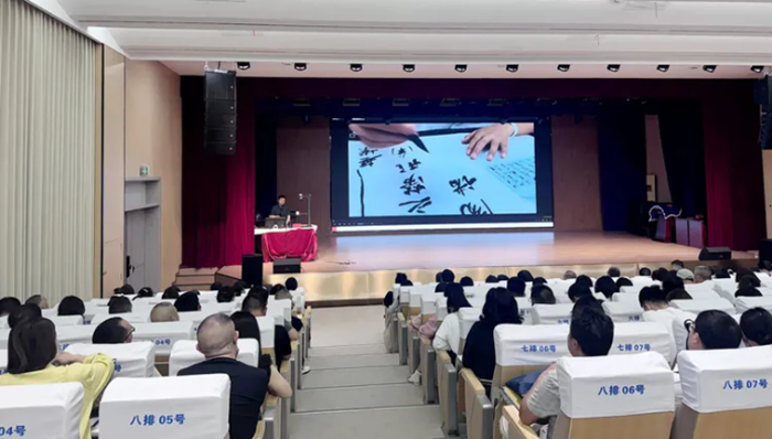 在專題培訓環節中,湖北省書法家協會副主席、湖北理工學院書法教研中心主任、副教授吳永斌作了以《淺談中小學書法教師能力與素養的構建》為主題的專題講座,以深厚的學術底蘊,從“書法教師的專業技能”“文化修養”等角度展開講座。通過古今書法名家案例剖析、教學實踐技巧分享,為教師們勾勒出專業成長的清晰路徑。參訓教師們認真聆聽,不時記錄要點,現場學習氛圍濃厚。