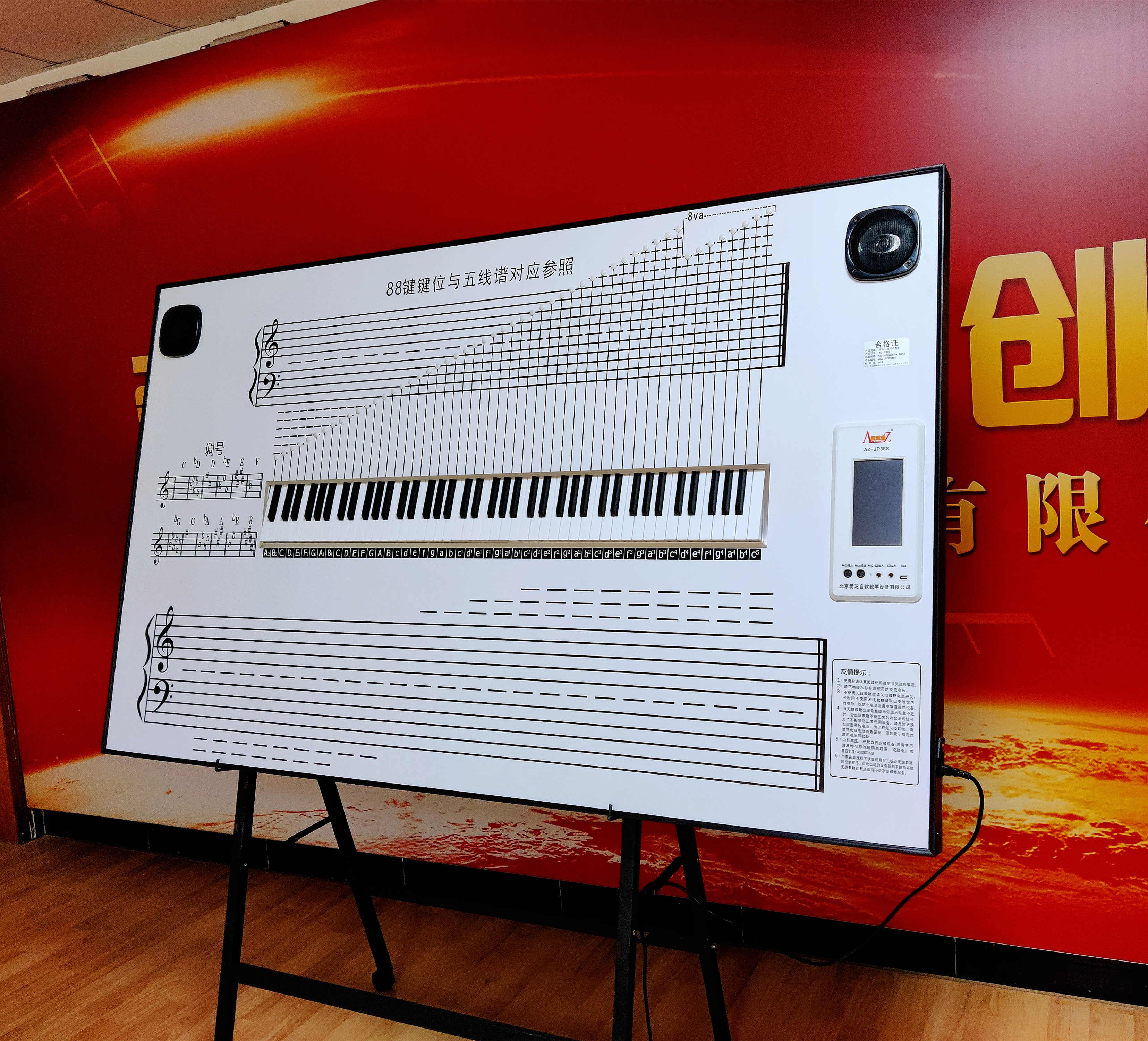 產品詳細介紹 1521 0069 025 李經理(同VX) 1、88鍵帶力度感應電鋼琴實體鍵盤; 2、具有高、中、低、關4種力度模式,默認中級力度模式,一組可書寫和教鞭演示的大譜表,音域范圍:C-e3共計53; 3、264種GM音色,2.4G無線教鞭,擺脫線纜束縛,操作更加方便; 4、帶低電量提示功能,標配2支無線教鞭,可根據用戶需求選配到4支無線教鞭; 5、無線教鞭上具有升調“#”、降調“b”轉換功能鍵; 6、可演示任意和弦; 7、帶自動伴奏功能; 8、人聲錄音、MIDI錄音,控制面板采用7英寸彩色液晶觸控屏,主機所有控制全部采用觸摸控制,觸摸滑動電子音量控制,具有主音量、曲目音量、伴奏音量、鍵盤音量4組獨立音量控制; 9、音量設置具有記憶功能,下次開機記憶上次關機時的音量數值; 10、可連接手機等藍牙設備,方便老師教學播放教學音頻課件,觸控面板可以開啟和關閉藍牙功能,藍牙設備名稱與主設備名稱一致,電教板以力度鍵盤為核心,結合樂理,更加方便樂理知識的教學,將鍵盤、譜表、調名、調號巧妙的聯系到一起,樂理演示簡捷直觀,樂理解析清晰易懂; 11、鍵位與五線譜對應的全音域88鍵(A2-c5)LED指示燈,可對照鍵盤與五線譜相應的位置; 12、液晶屏具有7段7寸簡譜、高低音、音名、唱名及升降顯示功能,在鍵盤演奏過程中可全音域顯示相對應的簡譜、升降及高低音、音名及唱名; 13、鍵盤及無線教鞭演示顯示的簡譜內容可以暫停保留在界面上,在軟件界面中可選擇關閉或開啟簡譜顯示功能; 14、開機自動記錄上課時間,方便老師掌控授課進度。 |