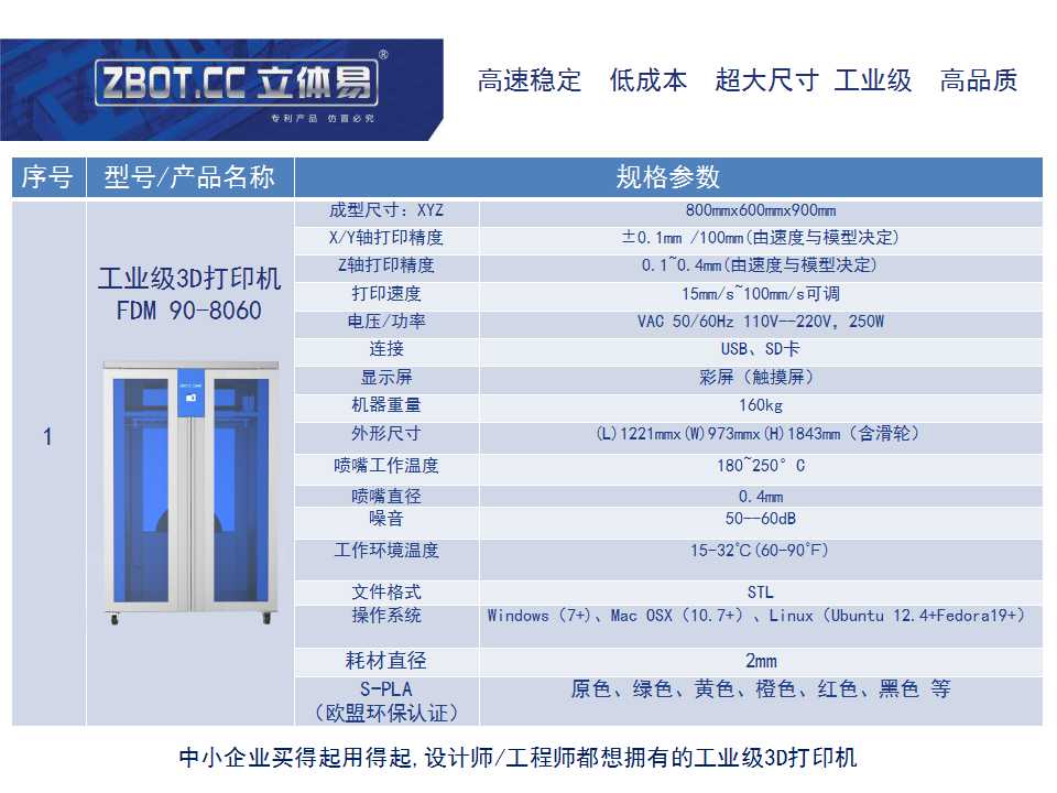 立體易FDM-90-8060超大尺寸工業級3D打印機