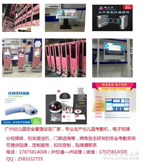 產(chǎn)品詳細(xì)介紹廣州護(hù)校通專業(yè)校園安防廠家,主要為各大營(yíng)銷公司和校園,提供校園安防設(shè)備和定制生產(chǎn)業(yè)務(wù)。主營(yíng)產(chǎn)品有幼兒園打卡機(jī),電子班牌,道閘,校車刷卡機(jī),分班播報(bào)等。