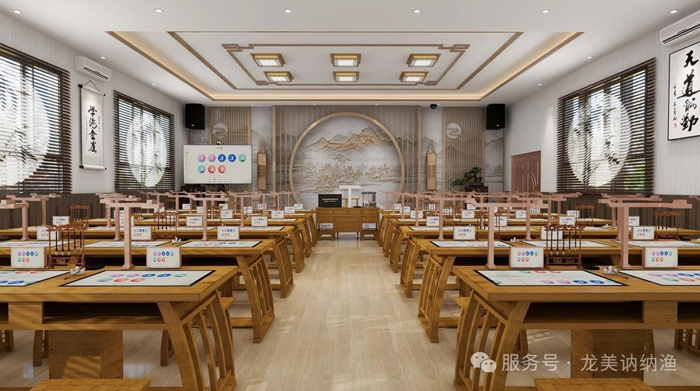 訥納漁書法實訓室配備了集臨、摹、拍、測、評等功能為一體的智慧書法教學設備系統,可滿足了軟、硬筆書法的臨、摹學習需求,還具有實時拍攝、作業一鍵收發批改與AI智能評測功能。