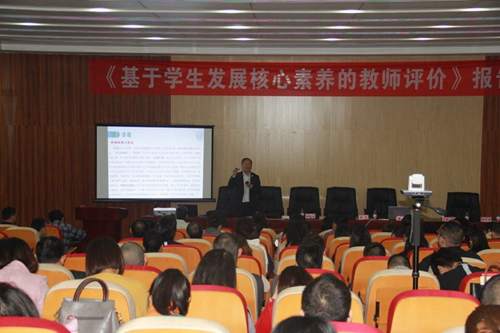 張教授就“新課程改革下探索新型教研模式;基于學(xué)科核心素養(yǎng)的課堂教學(xué)評(píng)價(jià),開(kāi)展有針對(duì)性的課堂觀察,提升學(xué)生創(chuàng)新能力,促進(jìn)教師專業(yè)發(fā)展”等課題進(jìn)行深入的講解。