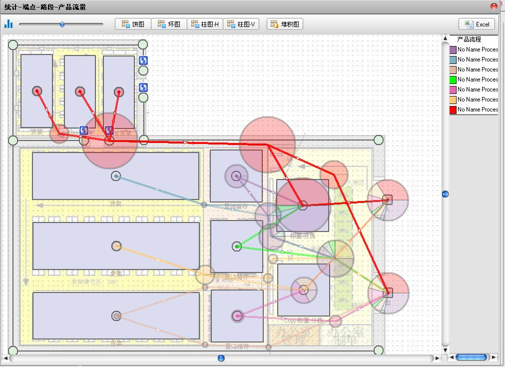 8.可以支持百種分析結(jié)果的輸出,如: 成本分析,產(chǎn)品流量,物料流量,線路長(zhǎng)度,運(yùn)輸時(shí)間等,支持可視化圖表輸出,數(shù)據(jù)輸出,靈活方便