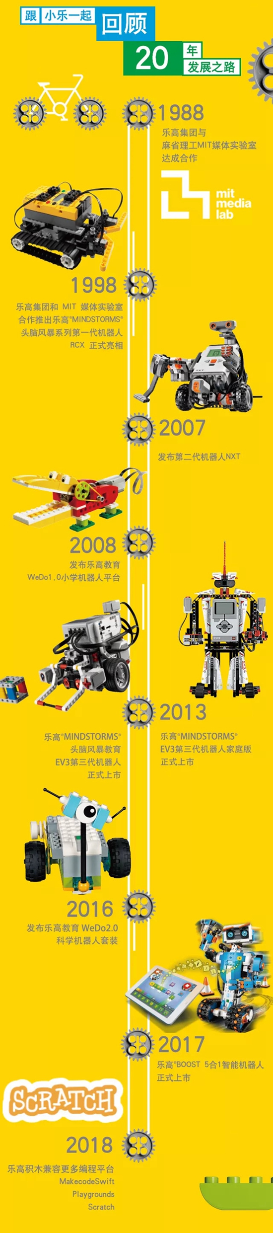 大家發現了嗎?李家明老師的趣味編程課堂中,隨處可見樂高編程產品的身影。你知道嗎,其實今年是樂高編程產品系列與全球各地的老師和孩子們,一同走過的第20個年頭。在這20年里,樂高編程產品是怎樣一步步“變身”的?現在就跟著小樂,一起來看看吧~