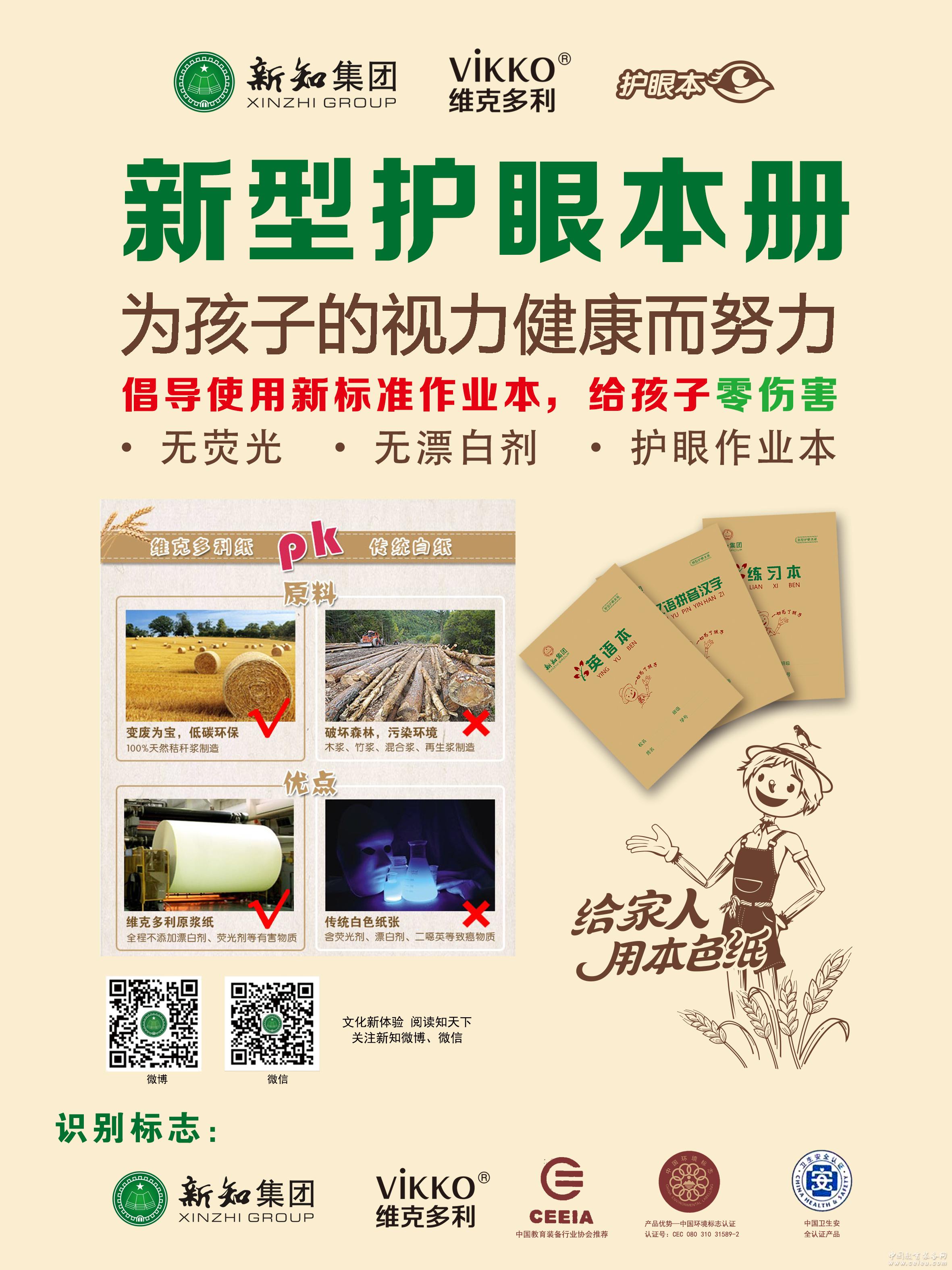 產品詳細介紹 給老師和家長的一封信 尊敬的老師和家長朋友: 您好! 您了解中國青少年近視率高居全球第一嗎?您知道中國小學生視力不良檢出率達到45.71%,初中生達74.36%,高中生達83.28%嗎?您給孩子用的作業本達到護眼標準了嗎?您知道作業本會危害到您和孩子的健康嗎? 2014年8月26日,中央電視臺《焦點訪談》欄目曾專題報道不環保的學習用品對學生視力的危害,觸目驚心的數據背后,是超4成家長不懂得保護孩子,給兒童使用紙張過于偏白的作業本,有些環保意識較強的家長雖然給孩子買了淡黃色的作業本,卻不知一些看似環保的作業本仍然會含有大量的熒光劑、二噁英等有害物質,且重金屬超標,會對做作業的孩子和批閱作業的老師健康造成嚴重影響。 為使孩子和老師遠離熒光劑等有害物質的毒害,國家文化出口重點企業——新知集團攜手泉林集團和維克多利集團等中國一流紙業名企,共同研發出本色環保護眼健康的作業本。采用“本色”原漿技術提取天然植物纖維,全程不使用漂白劑等有害制劑,是新一代對環境無污染,對人體無危害,原漿、原色的健康環保型造紙制漿技術。獲得國家秸稈原漿本色專利,并通過中國,美國FDA和歐盟AP三大食品級檢測,2018年入選CCTV《匠心》欄目,榮獲72屆中國教育裝備展金獎,成為中國教育裝備協會推薦產品。 為保護中國青少年視力,2018年3月26日,中國教育裝備行業協會出臺了《中小學作業本標準》,古有“孟母三遷”,讓我們從現在開始,共同學會辨識作業本的優劣,認識環保護眼作業本的相關標志,使用環保護眼作業本,讓孩子遠離危害,為老師和孩子創造一個健康學習的空間。 新知集團愿與更多人攜手為孩子和老師的視力健康而努力! |