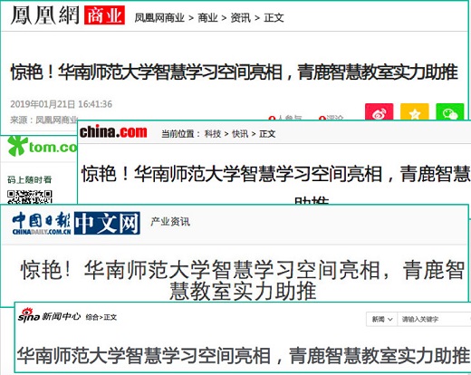 2018年末,華南師范大學(xué)的兩個(gè)全新的學(xué)習(xí)空間——礪儒·新師范創(chuàng)新學(xué)習(xí)空間和教師教學(xué)技能實(shí)訓(xùn)中心初步建成。伴隨著這兩個(gè)學(xué)習(xí)空間的落成,華南師范大學(xué)智慧學(xué)習(xí)空間獲得全國(guó)范圍內(nèi)多間高校甚至知名媒體的高度關(guān)注,獲得中央級(jí)新聞媒體中國(guó)日?qǐng)?bào)網(wǎng)、中華網(wǎng)等以及新聞門戶新浪新聞、鳳凰網(wǎng)等門戶媒體的報(bào)道。