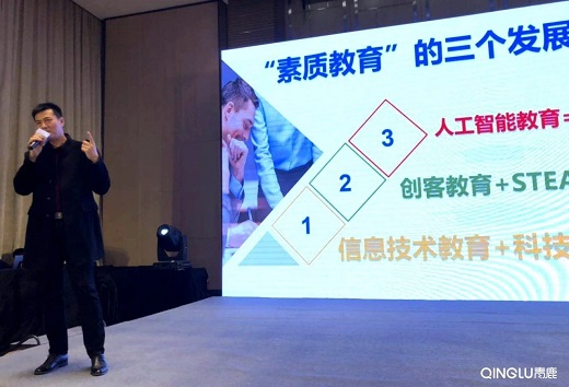 會上,來自長春師范大學、同時任全國創新創業導師、吉林省教育裝備中心創客教育專家組組長、吉林省計算機行業商會創客教育分會秘書長的李占超教授發表了題為《素質教育引領時代》的演講,與在場來賓共同探討素質教育的發展及教育信息化的未來趨勢。