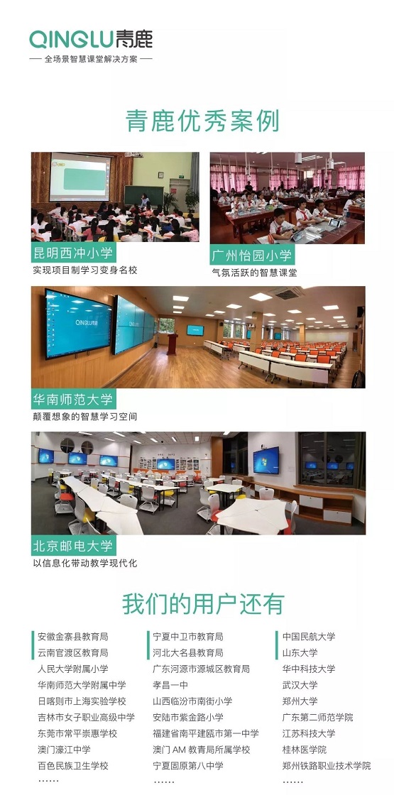 本次展會,青鹿還將為各位領導來賓展示青鹿在普教業務中的重要案例。目前,青鹿智慧課堂已經在多所中小學實現常態化應用。
