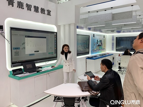 青鹿相關(guān)負(fù)責(zé)人向來賓們講解青鹿空中智慧課堂