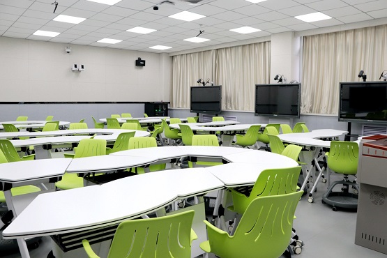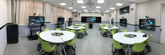 智慧教室分組布局靈活多變,師生們可以根據(jù)課堂教學(xué)環(huán)節(jié)的需要進行自由組合。在分組教學(xué)過程中,學(xué)生可以通過手機等智能設(shè)備,連接到課堂中參與小組討論,學(xué)生手中的“小屏”、每個小組設(shè)置的“中屏”以及教室前方的大屏之間可以進行輕松投屏互動。
