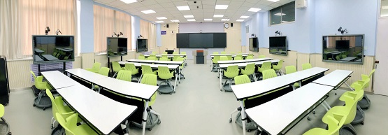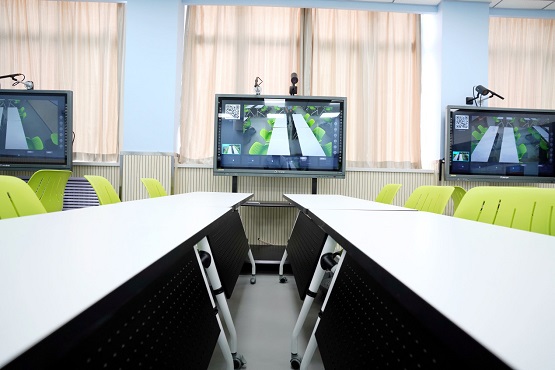 智慧教室內(nèi)設(shè)置了多塊高清電子屏,每臺電子屏裝有吊麥搭配攝像頭,用來記錄學(xué)生課題研討的整個過程,課后學(xué)生可以下載視頻對自己的研討思路進行復(fù)盤總結(jié)。