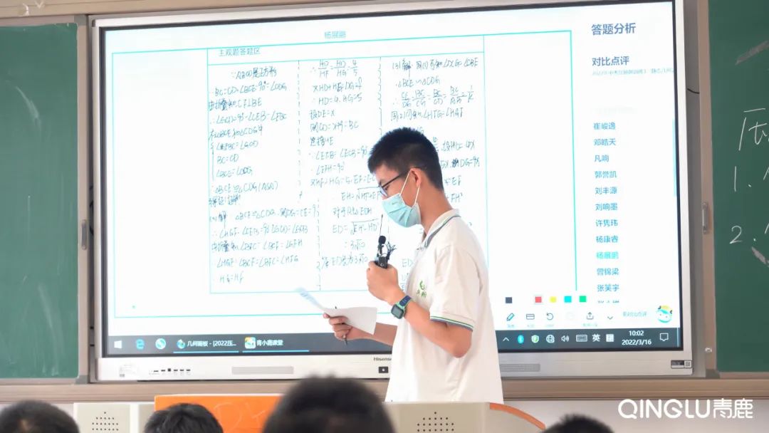 在數學課堂上,馬老師對學生作答結果進行選擇性展示,并由學生上臺分享作答思路后,老師再進行細致的總結與分析,既激勵學生表達,也讓其他學生能打開思路,思考解題的不同方式。