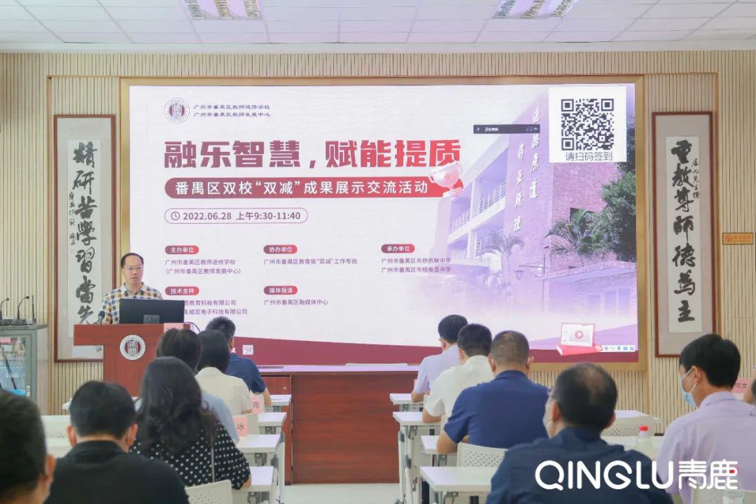 為進一步發揮優秀教學實驗試點的引領示范作用,加強片區、校際的交流學習,推動番禺區“融·樂”課堂教學改革,落實“雙減”政策,2022年6月28日,番禺區教師進修學校(番禺區教師發展中心)成功舉辦“融樂智慧,賦能提質”雙校“雙減”成果展示交流活動,本次活動由廣州青鹿教育科技有限公司提供技術支持。